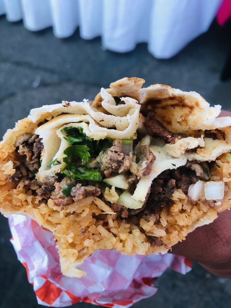 Choice of meat, rice, beans, onions, cilantro, sour cream, salsa (hot or mild), guacamole.